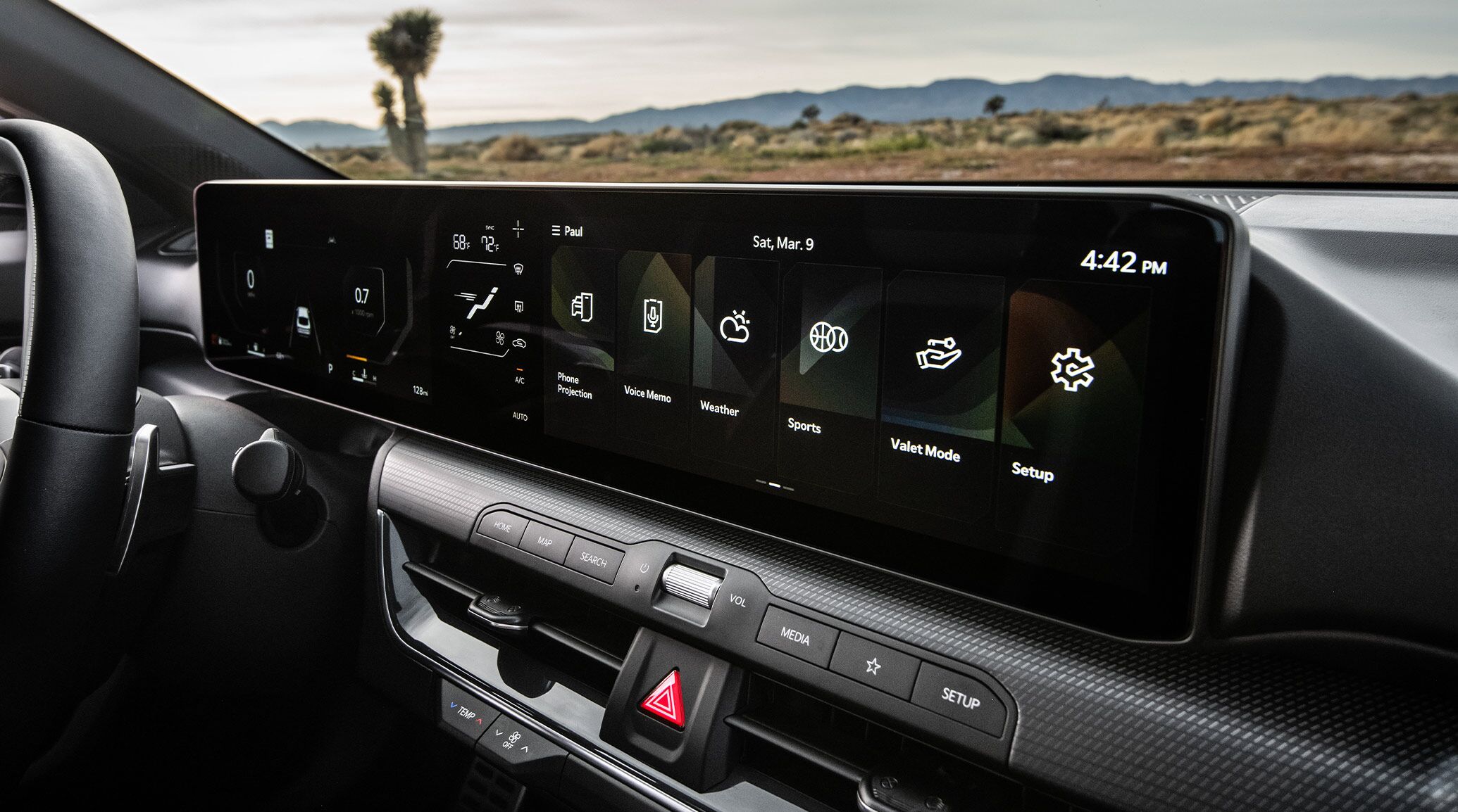 Comprised of a 12.3-in. instrument display, 5-in. climate display, and 12.3-in. touchscreen infotainment display. Distracted driving can result in a loss of vehicle control. When operating a vehicle, never use a vehicle system that takes your focus away from safe vehicle operation.